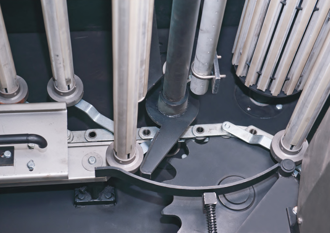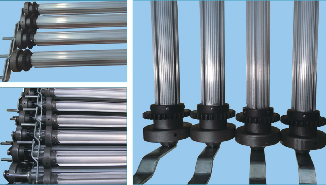 3、蒸箱內掛布輥直徑為φ50mm的輥體,輕巧、堅固,在使用中順著軌道自轉,避免出現橫檔印等瑕疵。并可根據不同工藝及織物選配:嵌膠條型,四翼型及細齒型三種形式掛布輥。